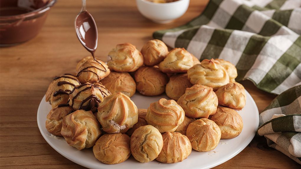 Los profiteroles se pueden rellenar con crema de chocolate como la preparada, pero también de nata y crema normal sin chocolate.