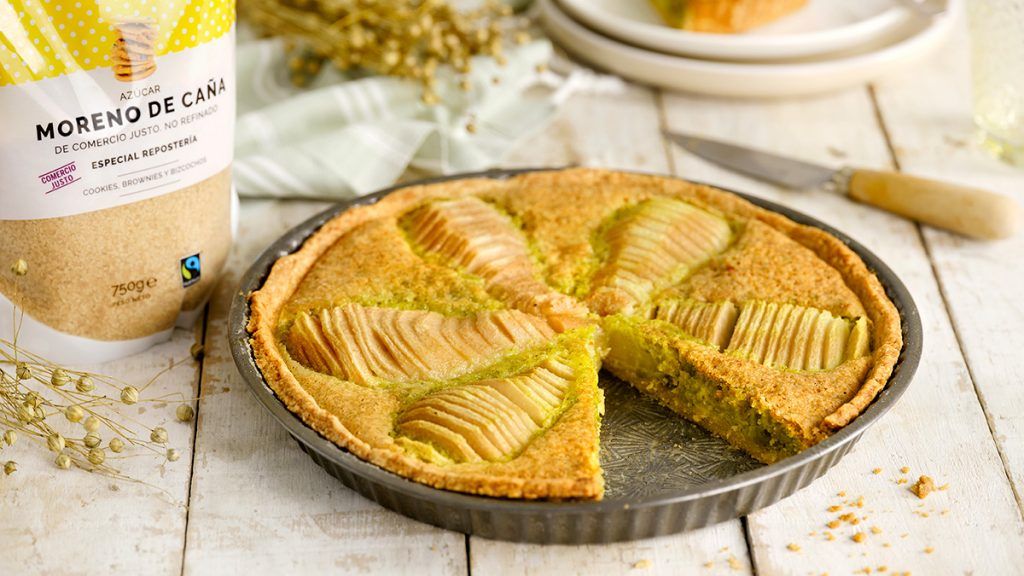 1. Para la masa: introducir la harina en un cuenco, agregar la mantequilla reblandecida, la almendra, el Azúcar Moreno de Caña Especial Repostería, el huevo y una pizca de sal. Amasar con las manos hasta obtener una masa homogénea.