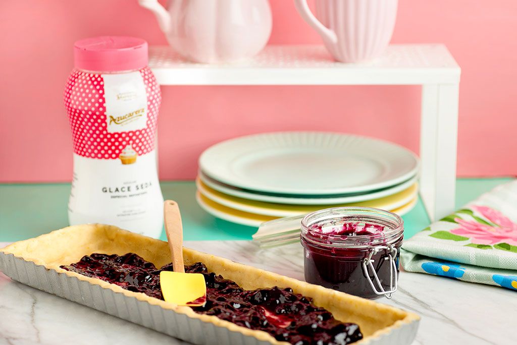- Pinchamos la masa con un tenedor y extendemos la mermelada