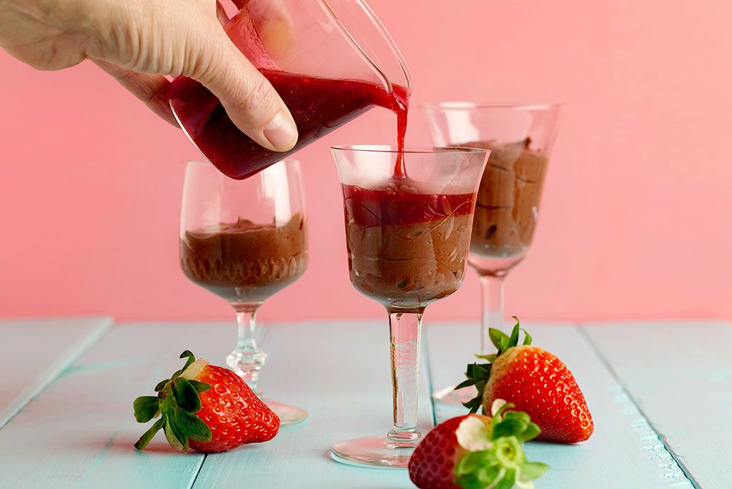 Este vasito de fresón y mousse de chocolate ligera derrite a cualquiera.